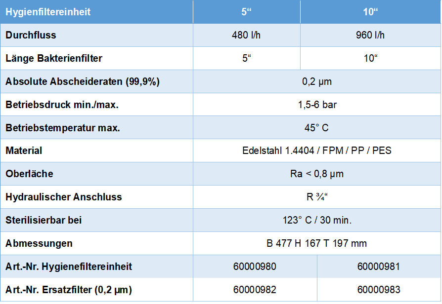 - Schneller Ein- und Ausbau des Bakterienfilters über Triclamp Anschlüsse