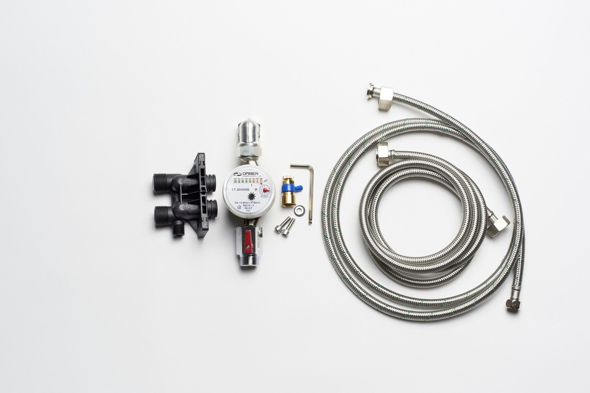Das digitale Leitwertmessgerät vom Typ A 1.1 besteht aus einer Anzeigeineheit zur flexiblen Wandmontage und einer separaten Messzelle zum Aufschrauben auf eine Ionenaustauscher-Patrone.